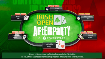 | Donnerstag, 17. April | 18:00 | 250 | Mini Irish Open Day 1H – €1,000,000 GTD |